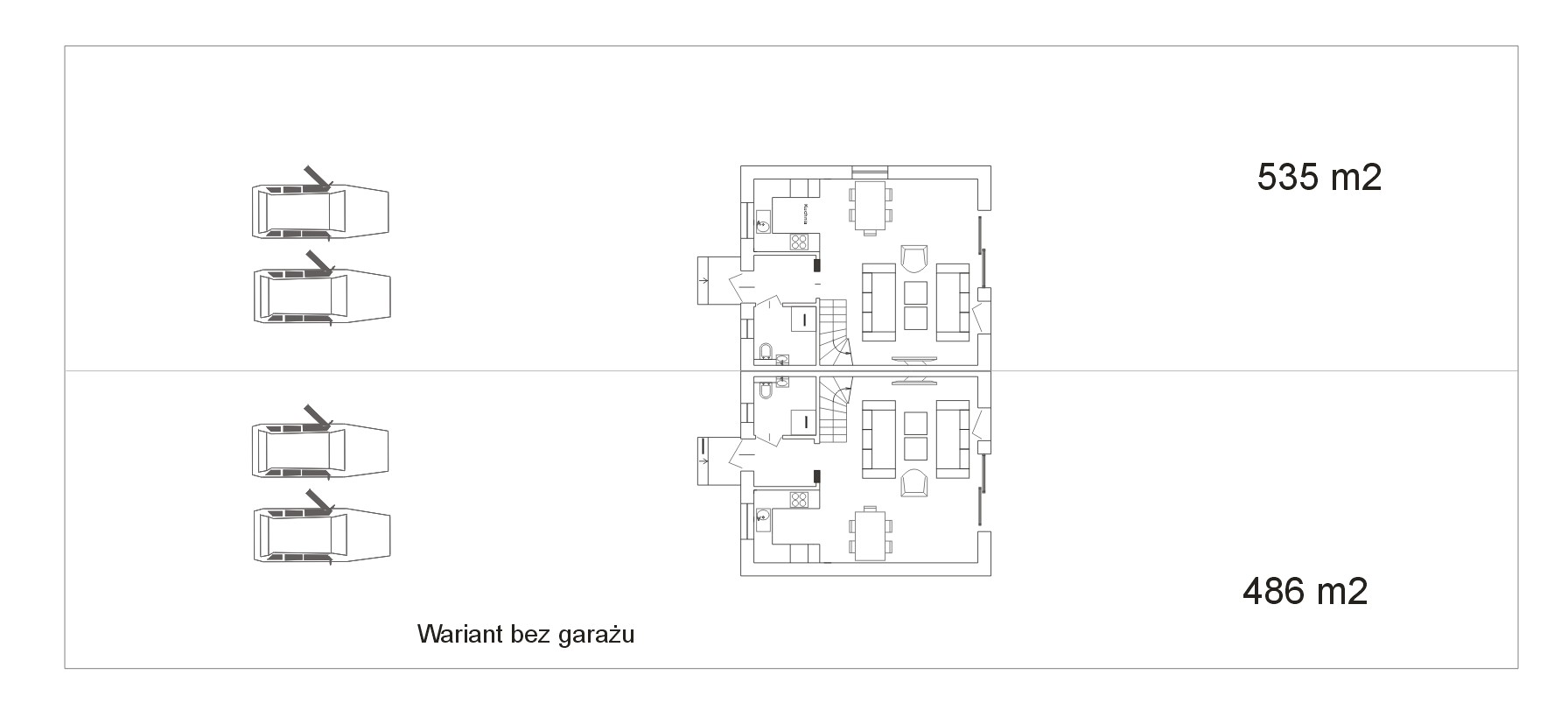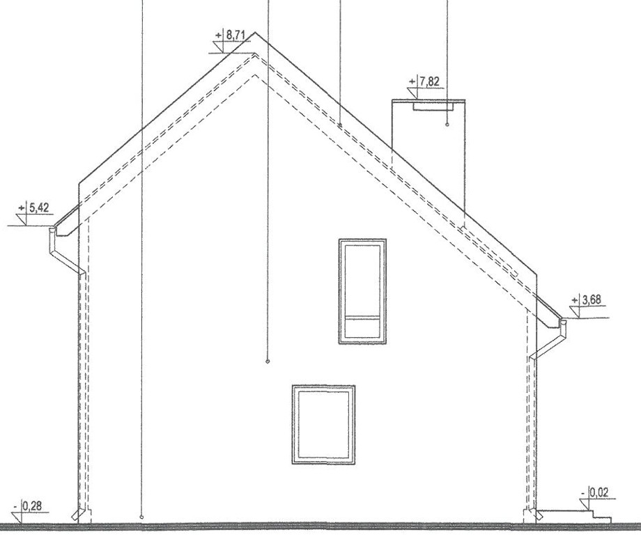 + strych o powierzchni podłogi ok. 32 m². i wysokości w szczycie ok. 220 cm.